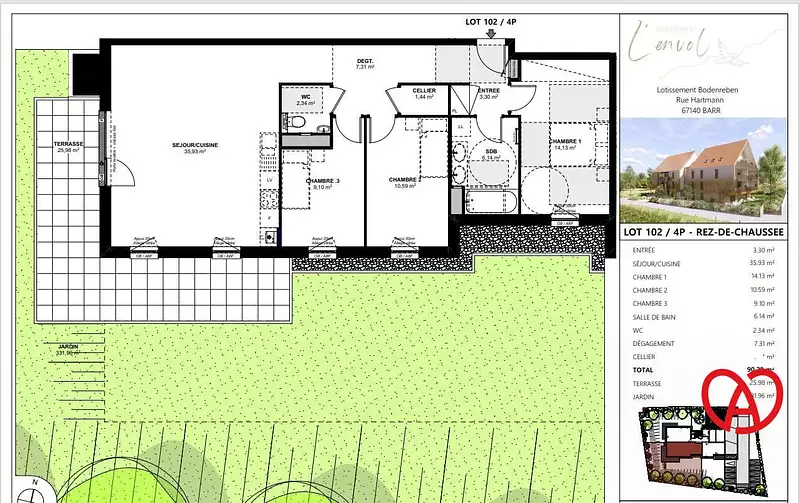 Nous vous proposons de découvrir dans la nouvelle Résidence 'L'Envol' cet appartement neuf F4 en rez-de-chaussée de 90,39m².