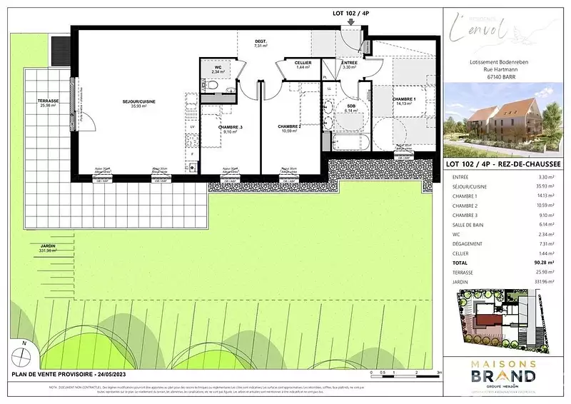 | Prix de vente : 353 900 € | Prix au m² : 3 932 € / m² |