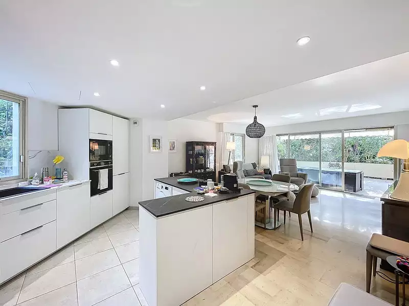 Situé dans le quartier résidentiel de Cannes Montrose, dans une copropriété intimiste, très bel appartement de 3 pièces de 90 m2 entièrement rénové, vous offrant une spacieuse terrasse de 90 m2 ainsi qu'un magnifique jardin privatif arboré de 160 me dans une maison.