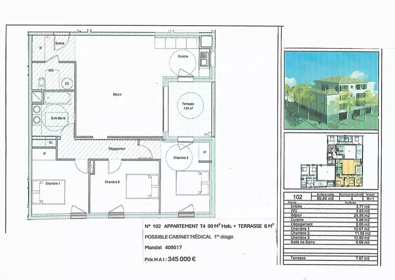 | Prix de vente : 345 000 € | Prix au m² : 3 833 € / m² |