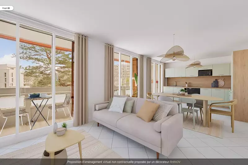 À LYON 5e – Résidence La Noiseraie, Rue Pierre Valdo en exclusivité ! Dans une résidence sécurisée récemment isolée thermiquement, découvrez ce spacieux T5 traversant Est/Ouest situé au 2e étage avec ascenseur. Superficie : 89,48 m² comprenant : Une entrée accueillante, un vaste séjour/salon avec cuisine ouverte (environ 35 m²) avec baies vitrées en double vitrage donnant sur balcon de 10 m², 3 chambres (9,89 m² – 9,05 m² – 10,84 m²) avec vue sur les Monts du Lyonnais, une salle de bains et WC séparé. Une cave en complément. Stationnement libre et facile dans la copropriété. Réfection des montées d'escaliers et des halls d'entrée votés. À proximité immédiate : bus, écoles (publique et privée, dont Westpoint), commerces. Charges mensuelles prévisionnelles : 258 € (chauffage collectif gaz au sol, eau froide, entretien).Honoraires à la charge de l'acquéreur.Nombre de lots principaux : 151