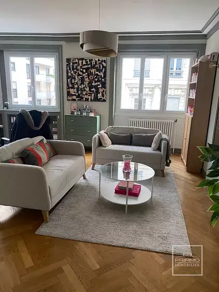 Dans immeuble Pitance bel appartement d'une superficie de 90.86m², très lumineux composé d'un beau séjour d'angle exposé Sud-Est, deux belles chambres, une cuisine à équiper, une salle de bains avec baignoire et douche et des toilettes séparés.