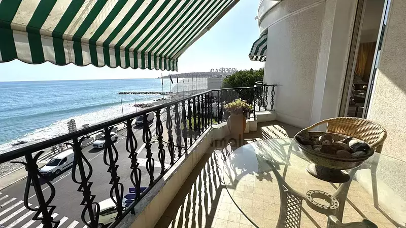 Avec terrasse attenante au séjour et à la chambre côté Mer ainsi qu'un balcon attenant à la cuisine et à la seconde chambre côté Casino.