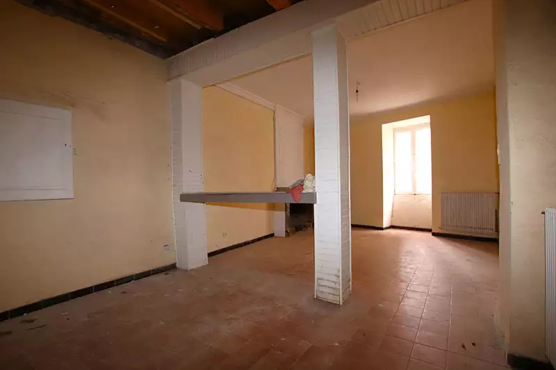 Dans sa description actuelle, 3 chambres, 1 salon/salle à manger, 1 espace cuisine, 1 hall d'entrée, 1 SDB et 1 WC indépendant.