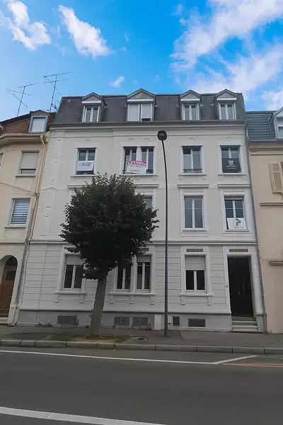 En exclusivité Mulhouse Dornach dans bel immeuble appartement de caractère entièrement rénové comprenant : une entrée, un séjour double ,une chambre , une cuisine à équipée, une salle de bains et sanitaire séparé; au sous sol une cave