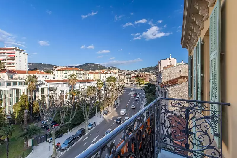 NICE CENTRE / CARABACEL : À 2 pas des commodités, des commerces et du tramway, au dernier étage d'un bel immeuble aux parties communes et façade rénovées, venez visiter cet appartement 3/4 pièces de 90 m², traversant, avec balcon et vue dégagée. Belle entrée avec placard, un grand séjour sur balcon exposée Est, une cuisine indépendante sur balcon, deux chambres avec rangements sur balcon, une salle d'eau et un toilettes séparés. Une cave complète ce bien idéal de par sa localisation pour tout faire à pieds. A voir rapidement. Honoraires d'agence 5% inclus à la charge du vendeur. Les informations sur les risques auxquels ce bien est exposé sont disponibles sur le site Géorisques: georisques.gouv