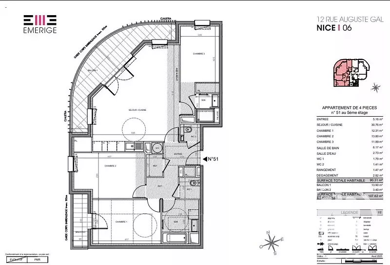 Situé dans le quartier de Riquier à Nice, au sein de la résidence Auguste Gal, cet appartement de 90.31 m² offre un cadre de vie agréable et fonctionnel.