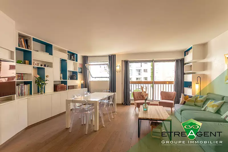 - EXCLUSIVITÉ ÊTRE AGENT Groupe Immobilier. - NOUVEAUTÉ Un bel appartement rénové de 90 m² avec un box privatif en option. Élégant appartement familial au coeur du 16ème arrondissement de Paris. Dans l'un des quartiers les plus prisés de Paris, au sein d'un immeuble de standing parfaitement entretenu, découvrez ce bel appartement de quatre pièces, idéalement situé. Niché dans un environnement calme et verdoyant, il offre une qualité de vie rare dans la capitale. Dès l'entrée, le charme opère. Le vaste séjour, baigné de lumière naturelle, donnant sur un paisible jardin intérieur et une vue partielle sur la Tour Eiffel, garantissant calme et intimité. La cuisine, ouverte sur le bel espace de vie, est fonctionnelle et bien agencée, Un premier WC indépendant complète cet espace de vie. L'espace nuit, accessible par un dégagement, se compose de trois chambres confortables, toutes prolongées par une agréable loggia filante et ouverte côté rue (pour un total de 6,50m²). Une salle de bains équipée de WC, ainsi qu'une salle de douche viennent parfaire l'agencement harmonieux de cet appartement pensé pour la vie de famille. En option, un box fermé en sous-sol est également proposé à la vente, offrant une solution de stationnement sécurisée et pratique, un atout précieux dans ce quartier. Cet appartement au confort moderne a été entièrement rénové avec goût, le tout dans un cadre sécurisé et recherché. Proche des commodités, des écoles prestigieuses et des transports, il représente une opportunité unique de vivre l'élégance parisienne. Ne manquez pas cette occasion de vous offrir un style de vie incomparable. Un bien rare, à la fois calme, lumineux et idéalement situé, à découvrir sans tarder. - Référence annonce : 96123. Les honoraires sont à la charge du vendeur. - POUR ACQUÉRIR EN PRIORITÉ CETTE PROPRIÉTÉ IDÉALEMENT PLACÉE EN PRIX contactez vite MATTHIEU LE BIHAN ! Copropriété de 76 lots - dont 26 lots habitation. (Pas de procédure en cours). Charges annuelles : 6000 euros.