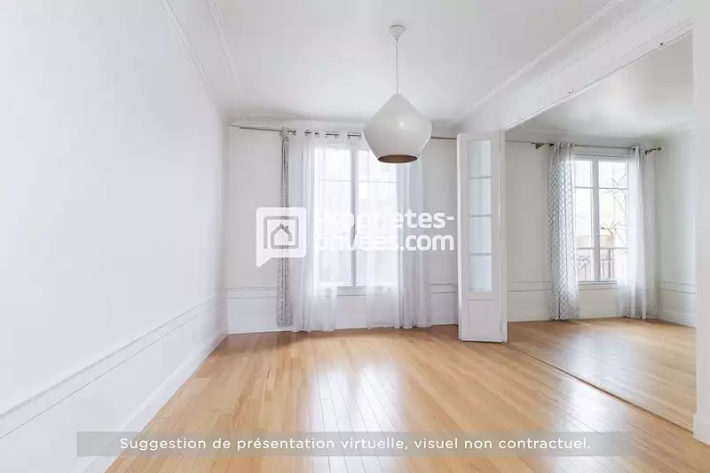 Cet appartement 3 pièces de 90,03 m² Carrez allie les éléments d'époque tels que la hauteur sous plafond de 2,80 m, les moulures, le parquet et les cheminées, au confort contemporain (rénovation architecte).