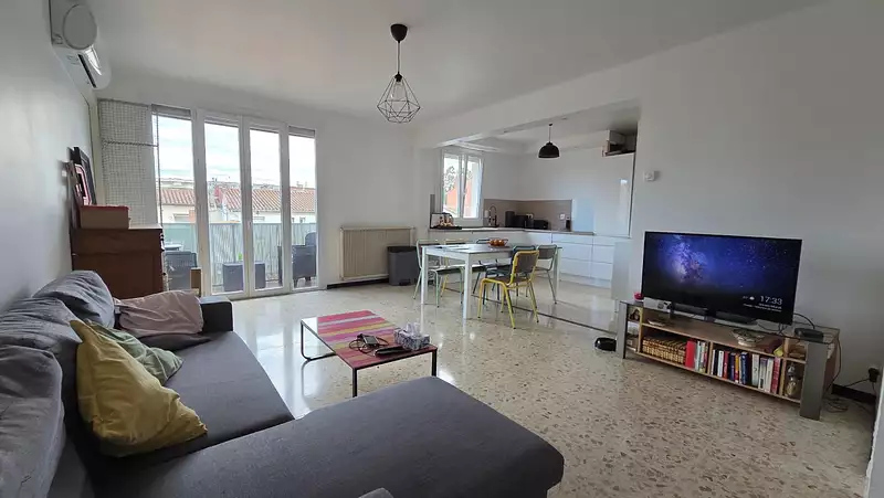 Un grand séjour avec cuisine américaine équipée, ouvert sur balcons exposés plein sud,