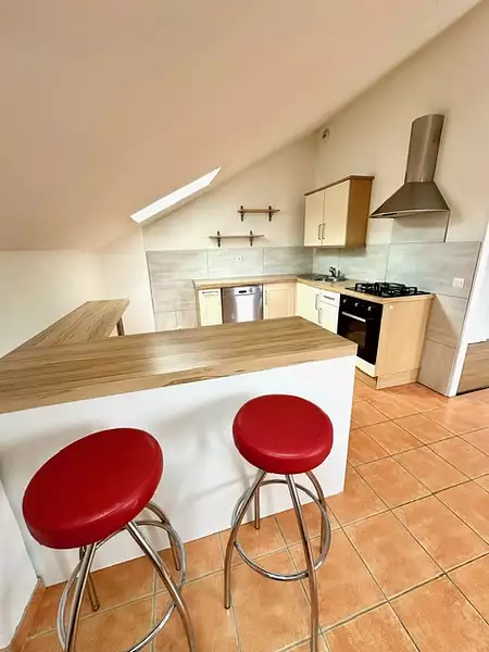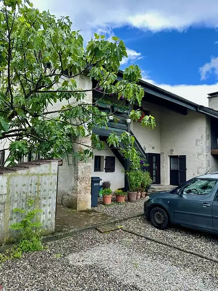 POUGNY 01550, au centre du village, dans une ferme rénovée, au dernier étage, spacieux et lumineux appartement type T3 (2 chambres) traversant de 90m2 au sol avec plafonds cathédrales, Il est composé : d’une vaste pièce de vie de 40m2 avec cuisine entièrement équipée ouverte sur le salon séjour salle à manger, un espace buanderie, un dégagement coin bureau avec placards, deux grandes chambres, une salle de bain avec wc et velux. L'appartement est chaleureux et cocooning dans un petit village familial. En annexe : une cave et une place de parking privative. Vue Dégagée sur les montagnes, environnement calme et agréable, proche de la gare avec accès à Genève.