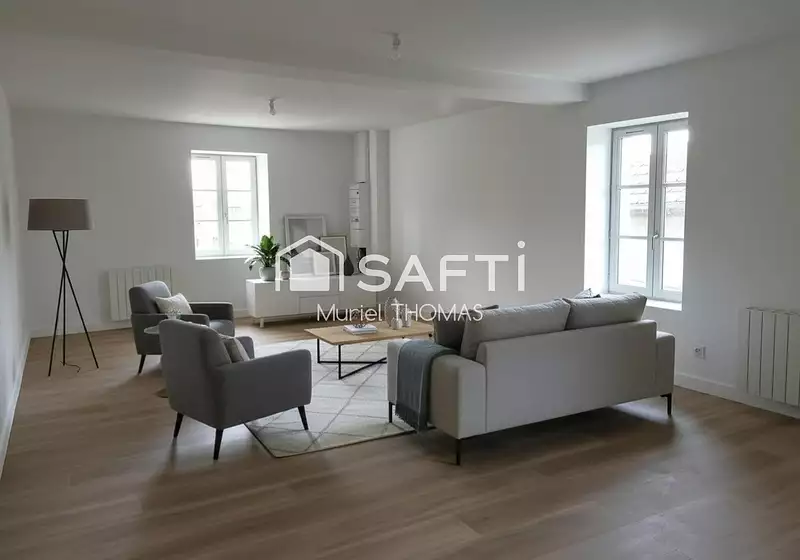 38890 SAINT-CHEF... Commerces et écoles accessibles à pied... Appartement de type T4 de 142 m2 loi Carrez (dont 90 m2 habitables actuellement). TOTALEMENT RÉNOVÉ, situé dans une copropriété bénévole de 3 logements. Il comprend : une grande pièce de vie d'environ 35 m2, Une salle d'eau. 3 chambres. Un WC... Une buanderie. TRÈS SPACIEUX et LUMINEUX... LE PLUS : des COMBLES aménageables (environ 50 m2)... DE PLUS : un garage de 26 m2 ainsi qu'un espace extérieur privé ET couvert d'environ 20 m2... Une CAVE indépendante. Également un PUITS qui se trouve sur les parties communes. Résidence SECURISEE... A DÉCOUVRIR... (projection virtuelle)