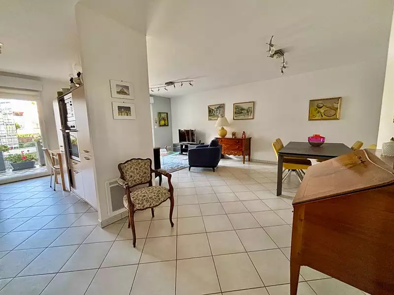 Très belle pièce de vie lumineuse avec accès à une grande terrasse de 14 m2 expo sud-ouest. Cuisine aménagée équipée haut de gamme et cellier.