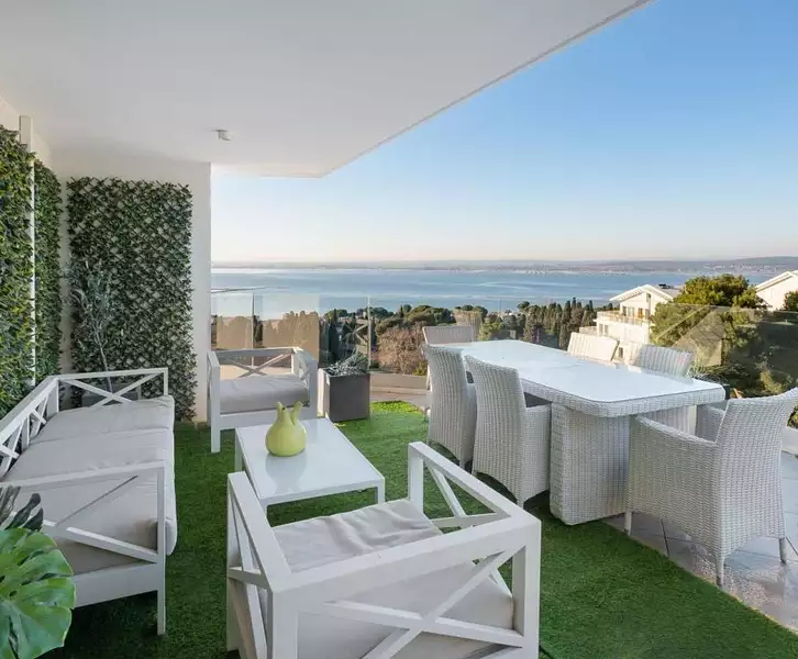 terrasse exceptionnelle, vue imprenable sur la mer, 100 m2 de terrasse.