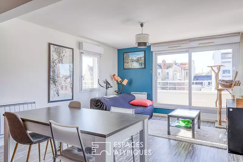 Idéalement situé dans le quartier prisé de La Fayette, à quelques pas du parc du Pin et de Condorcet, l'appartement dévoile 91 m² de surface habitable (105 m² au sol) sur deux niveaux, dans une résidence calme et moderne. Au sein d'un immeuble de bon standing, il offre un mode de vie fonctionnel, au pied de toutes les commodités. Agrémenté d'un balcon et d'une cave, ce bien dispose également d'un stationnement sécurisé. L'entrée distribue la spacieuse cuisine indépendante et ses rangements, ainsi que l'agréable pièce de vie, baignée de lumière, qui est le coeur de ce bien. Un balcon est attenant et communique également avec la première chambre ou bureau. Une salle d'eau et un WC viennent compléter l'ensemble. A l'étage, la partie nuit dévoile deux nouvelles chambres confortables, ainsi qu'une salle de bain et un second WC. Son emplacement stratégique renforce son attrait. L'appartement se situe à proximité immédiate des commodités, des écoles, du tramway, ainsi que de la gare et du centre-ville d'Angers. Vous profiterez ainsi d'une accessibilité idéale tout en bénéficiant du calme d'un quartier résidentiel recherché. En sus, possibilité d'acquérir un garage boxé privatif. Classe Énergie : D / Classe Climat : B Prix moyens des énergies indexés sur les années 2021, 2022, 2023 (abonnements compris) : entre 1 350 euros et 1 880 euros. Copropriété : 100 lots Charges annuelles de copropriété : 2 080 euros Pas de procédure en cours. Contact : Florian BENATRE - 06 77 41 22 31 EI - Agent commercial immatriculé au RSAC Angers n° 937 539 690 Les honoraires sont à la charge du vendeur. Les informations sur les risques auxquels ce bien est exposé sont disponibles sur le site Géorisques pour les zones concernées: www.georisques.gouv.fr Copropriété de 100 lots (Pas de procédure en cours). Charges annuelles : 2080 euros.