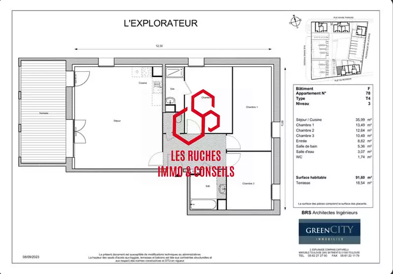 | Prix de vente : 381 900 € | Prix au m² : 4 169 € / m² |