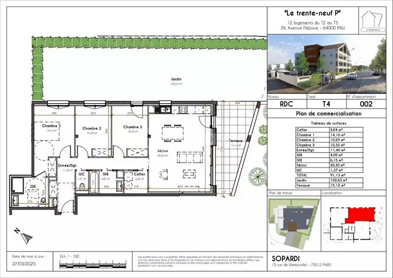 Dans un quartier résidentiel recherché de Pau, ce T4 neuf en rez de chaussée coche toutes lkes cases. il propose un vaste séjour lumineux avec cuisine ouverte à aménager, un cellier pratique, trois chambres bien agencées, une salle de bain , une salle de douche contemporaine. Le tout prolongé par une terrasse et un jardin exposé sud-est: parfait pour savourer des moments de calme en extérieur.
