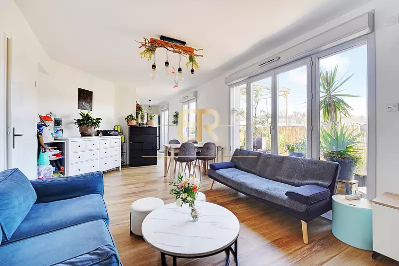 Situé à Romainville, dans une résidence de 2019 moderne et sécurisée, découvrez ce magnifique appartement T4 au 5ème étage avec ascenseur, offrant calme, luminosité et une vue dégagée. À 14 minutes à pied de la station Romainville - Carnot (ligne 11), qui relie Paris rapidement (moins de 20 min jusqu’à Châtelet) et 12 min ligne 5 Bobigny Pantin Raymond Queneau Ce bien de 84,68 m2 Carrez se compose de : • Un séjour lumineux, ouvert sur une cuisine équipée contemporaine ; • Trois chambres confortables, dont une avec balcon privatif de 5 m2 ; • Une vaste terrasse de 19,30 m2, exposée sud-ouest, idéale pour profiter du soleil ; • Une salle de bain familiale ; • Une salle d’eau supplémentaire ; • Un WC indépendant ; • Et un parking en sous-sol EN SUS possible ( 16K) Situé dans une copropriété récente et bien entretenue, dans un quartier calme, l’appartement bénéficie d’une excellente orientation sud-ouest et d’une vue dégagée. A viister sans tarder. Vidéo sur demande