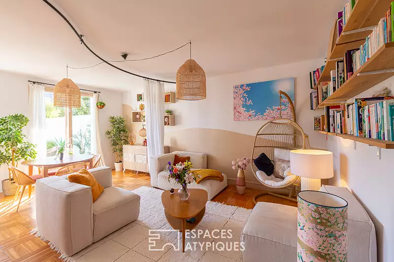 SEULEMENT CHEZ ESPACES ATYPIQUES Nichée dans un quartier calme et recherché du quartier de Saint- Michel sur Saint-Brieuc, découvrez cette perle rare. Cet appartement traversant de 91 m² au premier étage entièrement rénové par une décoratrice, offre une ambiance résolument contemporaine et un style unique. Une adresse de choix pour les acquéreurs en quête d'un bien qui sort de l'ordinaire, où la vie s'articule entre intérieur et extérieur avec une terrasse ensoleillée et un garage. Dès l'entrée, un agencement fluide mène à une vaste pièce de vie lumineuse sur parquet. Elle intègre une cuisine moderne de 2019, aménagée et équipée, qui s'ouvre sur un séjour spacieux. La douceur des couleurs et des matières naturelles invite au bien-être. De grandes ouvertures donnent accès à une terrasse intimiste. L'espace nuit, accessible via un dégagement, se compose de deux chambres, dont une avec dressing. Une salle d'eau à double vasque et des toilettes séparées complètent cette partie. Le bien dispose aussi d'une loggia ingénieusement transformée en coin lecture ou en bureau, un espace de travail inspirant ou de détente au soleil. La situation de ce bien immobilier est idéale. Le centre-ville, les écoles et les commerces sont facilement accessibles à pied. Ce qui distingue cet appartement atypique, c'est sa terrasse exposée Sud-Est, baignée de lumière et préservée avec peu de vis-à-vis, créant un havre de paix en milieu urbain. Le garage et la cave sont des atouts supplémentaires précieux. Une opportunité unique de s'installer dans un lieu de vie d'exception, alliant confort, style et fonctionnalité. Le chauffage est au gaz collectif avec des pontages individuels sur les radiateurs, et l'eau est chauffée de manière individuelle avec la chaudière au gaz située dans la cuisine. Les informations sur les risques auxquels ce bien est exposé sont disponibles sur le site Géorisques : www. georisques.gouv.fr CLASSE ENERGIE : D/ CLASSE CLIMAT : D Montant estimé des dépenses annuelles d'énergie pour un usage standard : entre 1100 euros et 1540 euros par an. Prix moyens des énergies indexés sur les années 2021, 2022, 2023 257 250 euros honoraire inclus / 245 000 euros hors honoraire / honoraires : 5 % à la charge de l'acquéreur. (5.00 % honoraires TTC à la charge de l'acquéreur.)