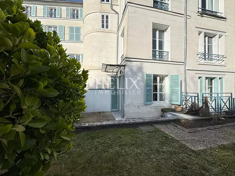 Saint Germain Laye, à 5 minutes à pied du RER A dans un immeuble ancien avec ascenseur en rez-de -jardin coup de coeur pour cet appartement de 4 pièces d'une surface de 91 M² . L'appartement en duplex est traversant, une double exposition, terrasse privative avec vue sur le jardin de la copropriété. Il se compose, une entrée, un beau séjour bénéficiant d'une jolie vue sur le jardin de la copropriété, le calme absolu, une cuisine individuelle pouvant être redistribuée " cuisine US" dans la pièce principale, un beau séjour ensoleillé, un WC, 2 chambres, placards, une salle de bains, un dressing, aménagé, un WC avec lave mains à l'étage également. Un emplacement de parking au sous-sol complète ce bien unique. Helix Immobilier, nous consulter Copropriété de 40 lots - dont 11 lots habitation. (). Charges annuelles : 3477 euros.