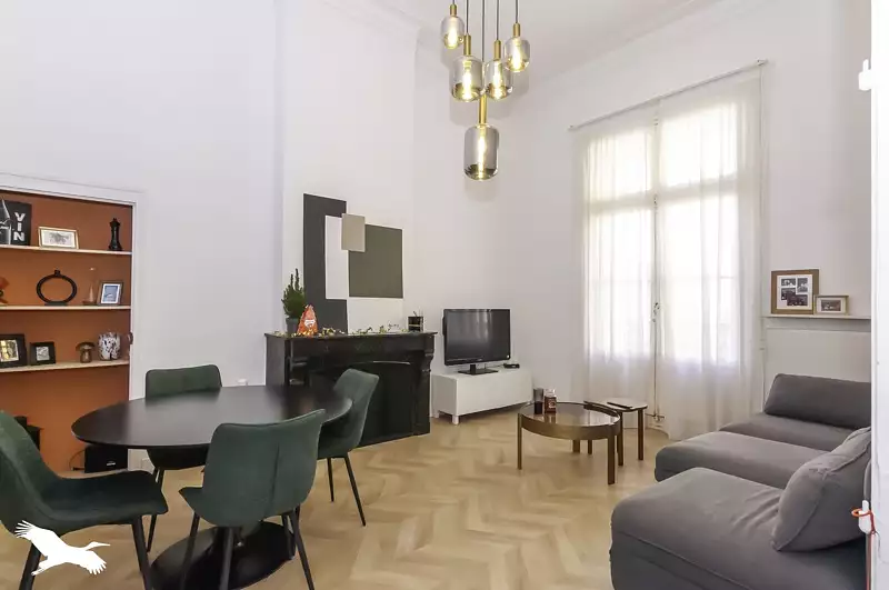 Bel appartement T3 de style Haussmanien situé à 2 pas des Allées Paul Riquet et des Halles. En partie rénové, vous serez séduits par le charme de l'ancien préservé. Il se compose d'une cuisine équipée ouverte sur séjour avec une belle hauteur sous plafond et une cheminée décorative, de deux chambres dont une avec dressing de 9m². Proposition d'aménagement virtuel non contractuelle en dernière photo.