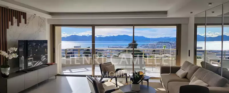 Dans une résidence de luxe sécurisée avec parc et piscine, située entre Montfleury et la Californie, appartement d'exception de 100 m² avec vue mer panoramique! Il est composé d'un séjour/cuisine de 40 m², 3 chambres en suite, une terrasse de 26 m². L'appartement est entièrement rénové. Parking en sous-sol