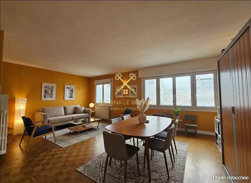 Découvrez ce magnifique appartement T4/5 de 92.59 m² habitables, niché au coeur d'un environnement paisible et verdoyant. Construit en 1965, cet appartement a été parfaitement entretenu et se trouve en bon état, tant à l'intérieur qu'au niveau des parties communes. Imaginez-vous dans ce vaste séjour de 29 m², baigné de lumière grâce à son exposition est-ouest. Les grandes ouvertures en PVC à double vitrage offrent une vue imprenable et une isolation optimale. La cuisine, indépendante et aménagée, est un véritable espace de vie où les saveurs et les rires se mêlent. Cet appartement comprend 3 chambres spacieuses, parfaites pour accueillir une famille nombreuse ou pour créer un espace de travail ou de loisirs. La salle de bains, moderne et fonctionnelle, ainsi que le WC indépendant, garantissent confort et intimité. Situé au 3ème étage sur 4, cet appartement bénéficie d'une cave de 5 m², idéale pour ranger vos affaires et vos souvenirs. Le chauffage de ville assure une température agréable tout au long de l'année. L'emplacement est idéal, à proximité de toutes les commodités. À seulement 10 minutes à pied, vous trouverez plusieurs restaurants, des commerces d'alimentation générale, une crèche, une école maternelle et une école élémentaire. Vous pourrez également profiter de la proximité de plusieurs médecins généralistes. Pour les plus jeunes, deux collèges sont accessibles en seulement 5 minutes en voiture. Un arrêt de bus se trouve à 10 minutes à pied, facilitant vos déplacements quotidiens. De plus, cet appartement est éligible à la fibre optique, garantissant une connexion internet rapide et fiable. Ne manquez pas cette opportunité unique de vivre dans un appartement lumineux, spacieux et parfaitement situé. Contactez-nous dès aujourd'hui pour organiser une visite et laissez-vous séduire par ce véritable havre de paix.