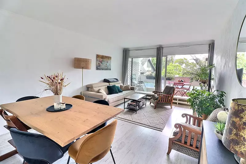 Résidence LE CLOS BARON - Appartement en TRIPLEX de 92m² + combles aménagées, soit 106.13 m² au sol. Entrée, dégagement avec placards, séjour sur terrasse, cuisine équipée sur balcon, wc. 1er étage : palier, 2 chambres sur balcon, salle de douche et wc, coin bureau sur petit balcon. 2ème étage : chambre parentale avec grand dressing et coin bureau. Combles. Parking. Chauffage collectif gaz. Proche toutes commodités à pied : écoles, commerces, Lycée International, Institut Notre Dame, TRAM 13 Bel Air. (3.50 % honoraires TTC à la charge de l'acquéreur.)