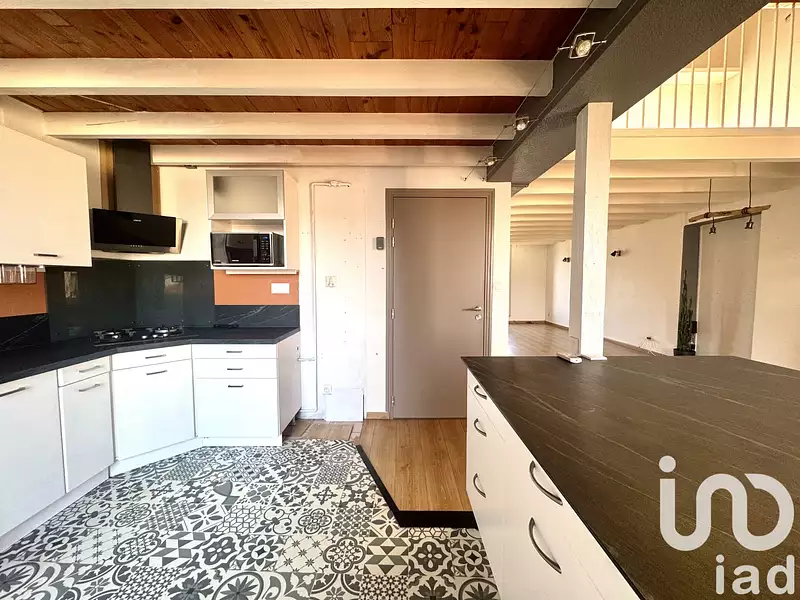- Un spacieux salon lumineux avec cheminée, ouvert sur une cuisine moderne d'environ 40 m²