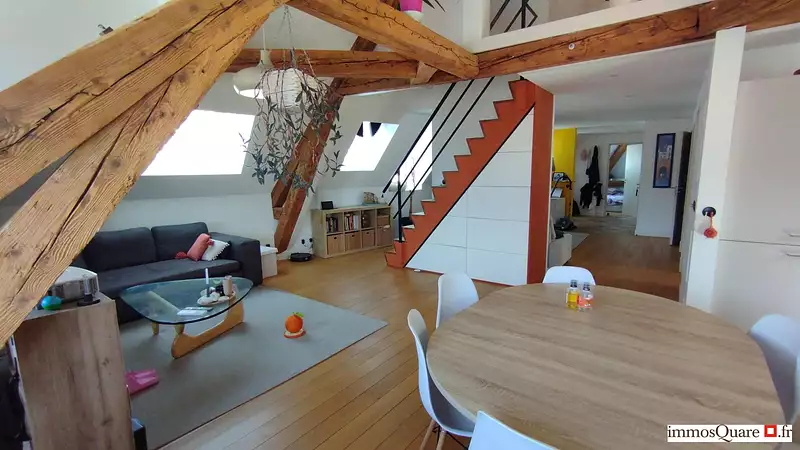 ImmosQuare vous propose en plein centre de Voreppe ce magnifique appartement atypique dans un immeuble ancien des années 1900 sous les combles d'une surface de 92m² hab et 146 m² utiles, il a été entièrement rénové en 2020 , il est au dernier étage .Il se compose d une très belle pièce de vie avec une cuisine équipée , un salon salle à manger ,d une surface de 44 m². on retrouve 3 chambres dont une en duplex , 1 salle d eau avec fenêtre, une buanderie , WC indép. Il a une cave , local à vélos et une place de parking privative . Chauffage par pompe à chaleur . Climatisation . . Il est à voir absolument pour les amateurs de biens atypiques.. Ce bien est actuellement occupé et sera libre au plus tard le 01/07/2026.