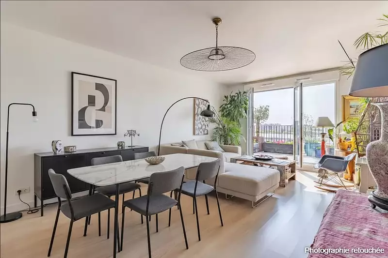Dans une résidence récente (2019 sous garantie décennale) de standing avec gardien et jardin, découvrez cet appartement familial et sa vue panoramique ( sur tout Paris) qui se compose : d'une entrée, un espace salon salle à manger lumineux avec accès à la terrasse plein SUD de 9m2, quatre chambres, une salle de bains, un toilette, et une suite parentale avec accès à la Loggia exposée OUEST
