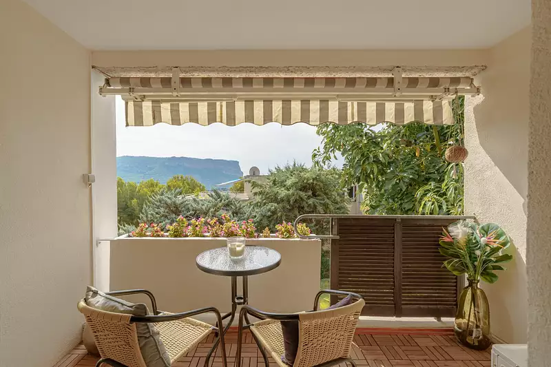 Dès l'entrée, vous profitez d'un hall accueillant avec bureau aménagé et WC indépendant avec lave-mains. Le vaste séjour, baigné de lumière, s'ouvre sur une belle terrasse offrant une vue sur le Cap Canaille. La salle à manger attenante et la cuisine indépendante entièrement équipée complètent l'espace de vie, idéal pour recevoir et partager des moments conviviaux.
