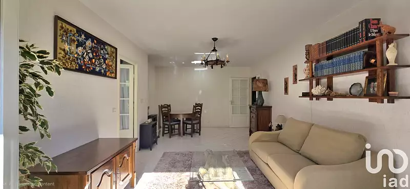 Un double séjour convivial ouvrant sur une grande terrasse.