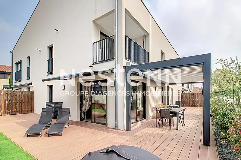 Secteur Eglise Place Curial Bien Rare en Rez-de-Jardin Dans un secteur recherché, à deux pas de la Place Curial et du coeur historique de Bron, découvrez ce somptueux appartement T4 de plus de 95 m², situé en rez-de-jardin au sein d'une résidence intimiste et récente (2020). Volumes, Lumière et Élégance Exposé plein Sud et Ouest, cet appartement lumineux et traversant offre une pièce de vie généreuse, avec un salon raffiné et une cuisine séparée haut de gamme, mise en valeur par de superbes parois vitrées. L'espace nuit se compose d'une suite parentale, de deux chambres confortables, d'une salle de bains élégante ainsi qu'une buanderie parfaitement aménagée. Un Jardin-Terrasse d'Exception Toutes les pièces s'ouvrent sur une splendide terrasse en composite de 117 m², véritable prolongement de l'espace de vie. Cet espace extérieur, intime et soigné, est équipé d'une pergola bioclimatique, d'un store banne motorisé et d'un système d'arrosage intégré. Prestations Premium Climatisation réversible encastrée Placards sur mesure Volets roulants motorisés et centralisés Matériaux et finitions de grande qualité Confort et Praticité Un garage box fermé en sous-sol est proposé en supplément. La copropriété, à taille humaine, garantit calme, confort et sérénité. Un bien rare alliant emplacement, prestations haut de gamme et vie de plain-pied avec jardin. A découvrir sans tarder. Alerte : Vidéo de présentation à la demande sur notre site internet. N'hésitez pas à regarder nos autres biens sur notre site internet, et pensez à créer votre alerte ! Vous souhaitez acheter sur BRON ? Situé à proximité de LYON BRON fait partie des communes dites de l'Est lyonnais, en 1ère couronne, avec plus de 41 000 habitants. Sa situation géographique stratégique est unique en la reliant en quelques minutes au coeur du centre-ville lyonnais, grâce aux axes routiers et aux 3 lignes de tramway T2, T5 et T6 , et métro D. La ville de Bron possède de nombreux espaces verts dont le le Parc de Parilly, le Fort de Bron et le Bois des Essarts, ainsi qu'un aéroport dédié à l'aviation d'affaires. C'est une ville très sportive avec un stade d'athlétisme, un centre nautique, des terrains de tennis? Elle dispose plusieurs grands ensembles hospitaliers et l'hôpital Femme-Mère-Enfant. Une grande zone commerciale dynamique, avec Castorama, Decathlon, Botanic, Auchan...., répondra à vos besoins. La Ville de Bron est également une ville Etudiante avec sa Faculté Lumière Lyon 2e, et l'IUT, également le Lycée de l'automobile, le Lycée Jean Paul Sartre? Les Brondillants sauront vous accueillir ! Copropriété de 20 lots - dont 10 lots habitation. (Pas de procédure en cours). Charges annuelles : 1600 euros.