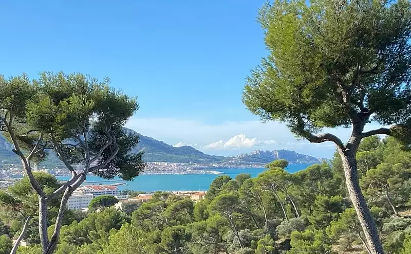Une terrasse spacieuse dans le prolongement du séjour fait face à la rade sud de Marseille.