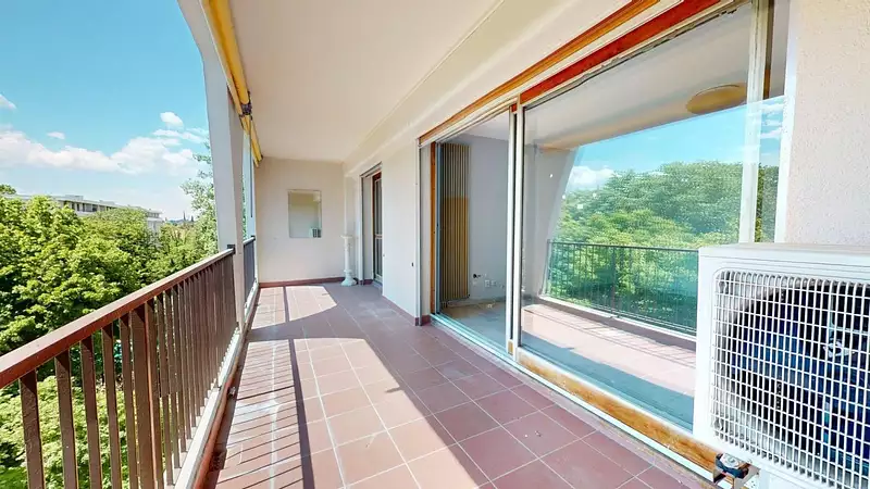 Dès l'entrée, on découvre un séjour spacieux et climatisé, ouvert sur une terrasse de 14 m² où l'on profite volontiers du soleil et du calme de la résidence. Un balcon privatif complète agréablement les espaces extérieurs.