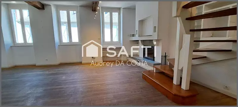 À l'intérieur, cet appartement en duplex de 94m² au 1er étage allie charme de l'ancien et luminosité. Doté de poutres apparentes, il comprend une belle pièce de vie avec insert bois, une cuisine ouverte équipée, un cellier, et un wc au premier niveau. À l'étage, on trouve 3 chambres spacieuses avec placards, une salle de bain, et un wc indépendant. Un bien confortable et plein de cachet, idéal pour une vie citadine paisible.