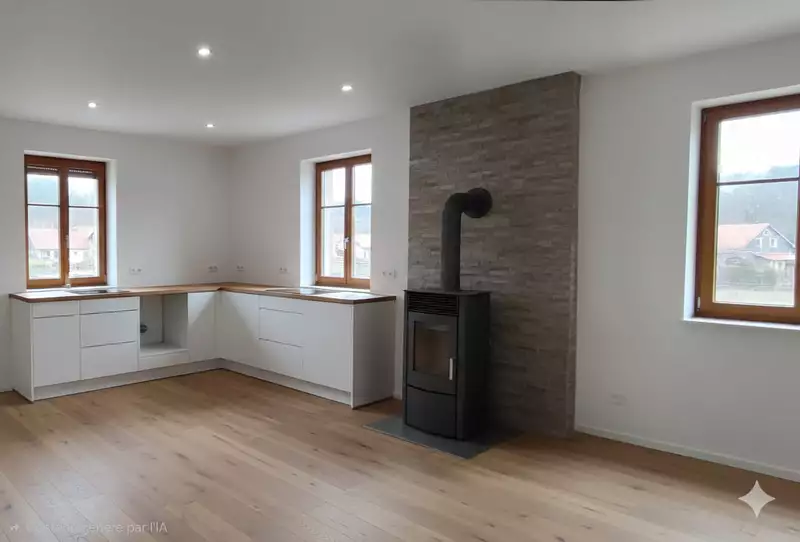 Découvrez notre T3 Duplex de 94 m2 Carrez (121 m2 au sol), issu de la réhabilitation totale d'une bâtisse dans un quartier calme d'Orchamps-Vennes (seulement 5 logements !).