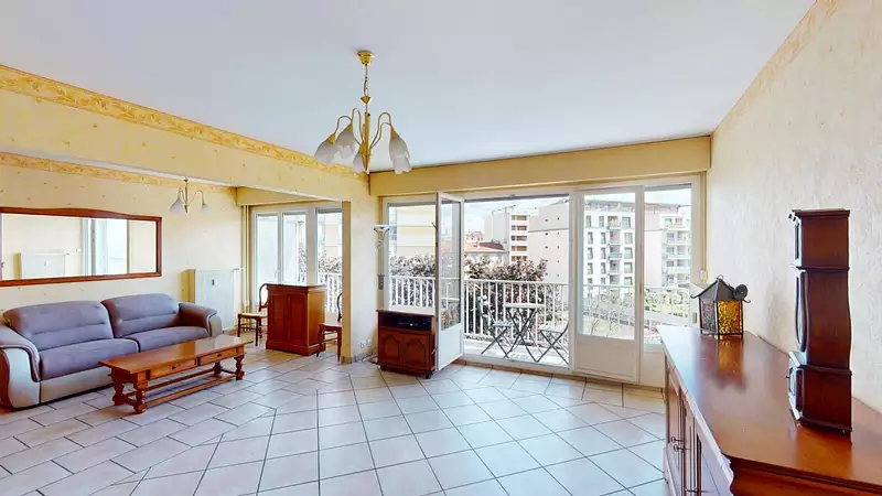 Saint Etienne, FOCH - CITÉ DU DESIGN. Dans un environnement résidentiel calme et prisé, venez découvrir ce bel appartement traversant de 94,79 m², situé au 4ᵉ étage d'une résidence bien entretenue et sécurisée. Baigné de lumière grâce à son exposition Est/Ouest, ce bien offre un agréable double séjour ouvrant sur un balcon filant avec vue dégagée, parfait pour profiter des beaux jours. La cuisine indépendante et aménagée, prolongée par un cellier attenant, allie praticité et confort au quotidien. L'espace nuit comprend deux chambres spacieuses, une salle d'eau fonctionnelle et des toilettes séparées. L'appartement a bénéficié de mises à jour régulières (tableau électrique neuf, cumulus remplacé, menuiseries PVC double vitrage, volets roulants électriques). De nombreux rangements intégrés viennent parfaire l'ensemble. Le chauffage collectif avec répartiteurs assure une diffusion homogène de la chaleur et un confort maîtrisé. En complément, une cave et un garage privatif fermé viennent s'ajouter à cet ensemble complet, un véritable atout dans le secteur. Sa situation est idéale : à proximité des écoles, des transports (tramway et bus), des commerces et des espaces culturels, tout en offrant un cadre de vie paisible et agréable.