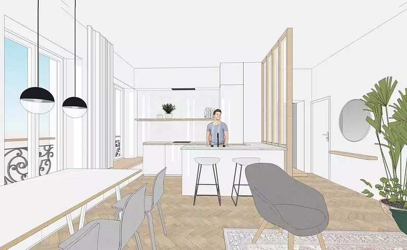 L'appartement est entièrement à rénover. Les photos sont 1 projection de la rénovation future. Nous pouvons vous accompagner dans votre projet de rénovation.