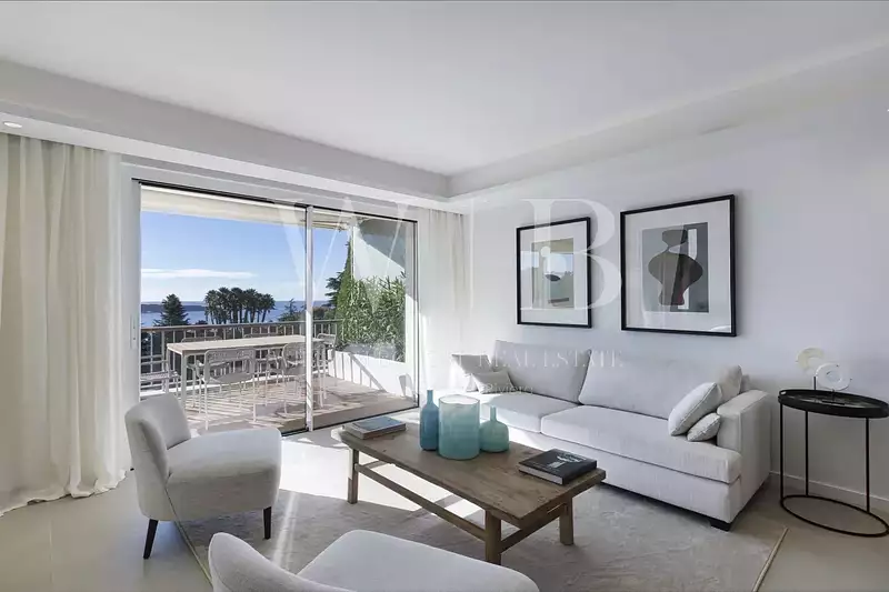 *** Exclusivité WBRE ***. En plein cœur de la Californie, appartement 4 pièces d’environ 95,65 m² s'ouvrant sur une large terrasse exposée plein Sud d'environ 20 m² et bénéficiant d’une vue panoramique sur la mer, les Iles de Lérins, la pointe du Palm Beach et le splendide parc classé de la copropriété.