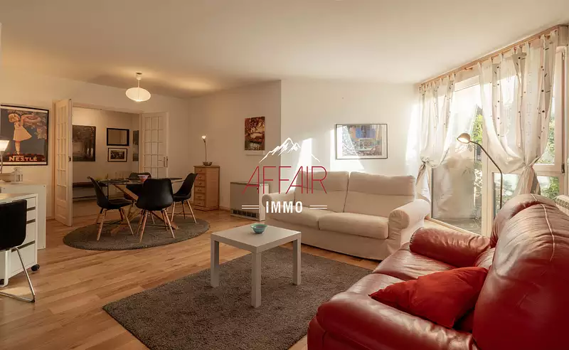 COLLONGES-SOUS-SALEVE. A 3 minutes de la douane de Croix de Rozon, 15 min centre GENEVE, 25 min aéroport. Situé sur les hauteurs de la commune, au calme cet appartement de type 3 d'environ 95.66 m2 offre une entrée spacieuse avec placard, une grande pièce de vie avec balcon, une cuisine récente aménagée et équipée, deux chambres avec placard et balcon, une salle de bains et un WC indépendant.
