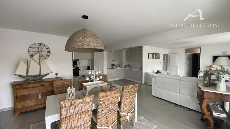 L'Agence du Littoral vous propose ce superbe appartement de 95 m2 de type T3 dans une résidence de standing avec ascenceur. Il se compose d'une entrée, un salon/séjour lumineux de 54 m2 avec cuisine équipée/aménagée donnant une terrasse de 23m2, un cellier, deux chambres, une salle d'eau, un wc séparé. Pour compléter ce bien une place de parking couverte et sécurisée.