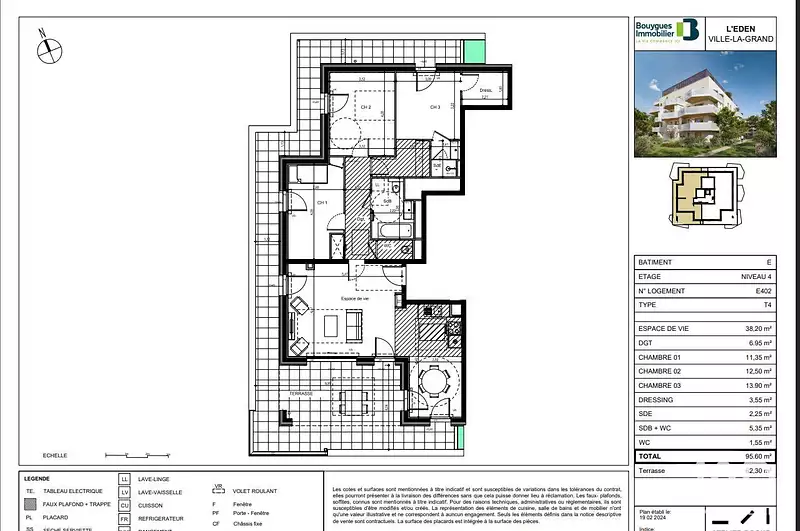 | 95 m² - 4 pièces - 3 chambres | Dernier étage (4ème) avec ascenseur |