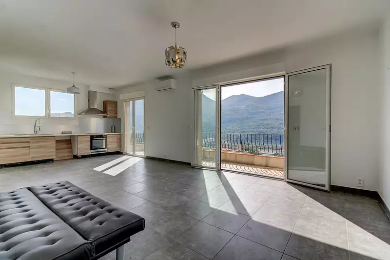Un vaste séjour baigné de lumière ouvrant sur un balcon exposé Ouest, parfait pour profiter des couchers de soleil.