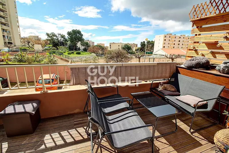 En EXCLUSIVITÉ dans votre agence - T4 de 97 m² rénové avec terrasse, suite parentale, parking et cave Situé dans le secteur calme et recherché de Pietralba, venez découvrir ce bel appartement T4 d'environ 97 m², entièrement rénové avec soin, au sein d'une résidence bien entretenue et proche de toutes les commodités. Installé en rez-de-chaussée surélevé, il bénéficie d'un agencement optimisé, idéal pour une famille ou un couple en quête de confort, d'intimité et de praticité. Il se compose de : - Une entrée avec rangements, - Une cuisine indépendante moderne avec loggia attenante, - Un séjour lumineux ouvrant sur une grande terrasse agréable, - Trois chambres, dont une suite parentale avec dressing et salle d'eau avec WC, - Une salle de bain supplémentaire, - Un WC indépendant. Les atouts : Climatisation réversible, - Cave privative, - Place de parking numérotée, - Résidence calme, sans travaux de copropriété à prévoir, Double vitrage, interphone. Emplacement idéal à deux pas des écoles, commerces, transports et à seulement quelques minutes du centre-ville. A visiter sans tarder ! Visite virtuelle disponible Anne Colonna (EI) Agent Commercial - Numéro RSAC : - .