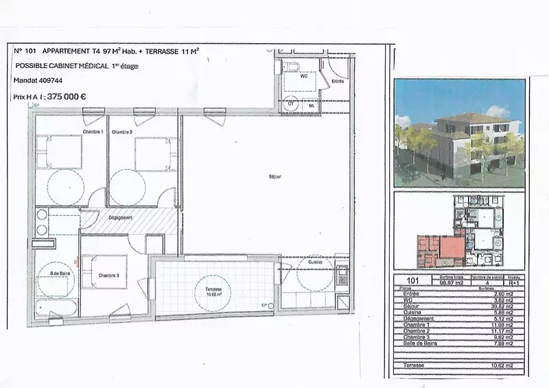 | Prix de vente : 375 000 € | Prix au m² : 3 866 € / m² |