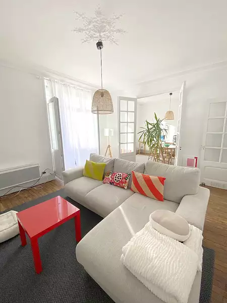 NANCY ANATOLE FRANCE DANS UN BEL IMMEUBLE BOURGEOIS APPARTEMENT DE CARACTÈRE F5 (parquet, moulures, cheminée) de 97 m² traversant et lumineux disposant dune grande cave en sous-sol. Cet appartement s'ouvre sur une grande entrée avec dégagement, donnant sur un vaste salon-séjour avec accès sur un petit balcon sud, on y trouve également une cuisine équipée, une salle de bains aménagée, un WC, et 3 belles chambres. Ce secteur est résidentiel et privilégié. Proche commerces, transports, écoles et cabinets médicaux Vous trouverez de nombreuses photos sur notre site CHEZVOUSIMMOBILIER.COM