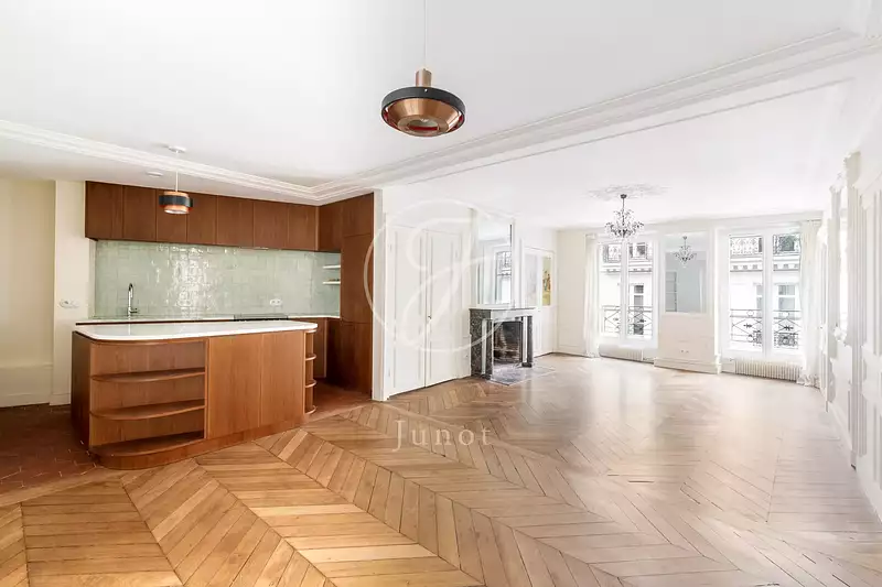 Entièrement rénové avec de beaux matériaux, il se compose de : Une entrée avec bibliothèque et dressing, une double séjour traversant nord-sud, une cuisine ouverte aménagée, deux chambres, un bureau (chambre bébé), une salle de bains ainsi que de toilettes séparées.