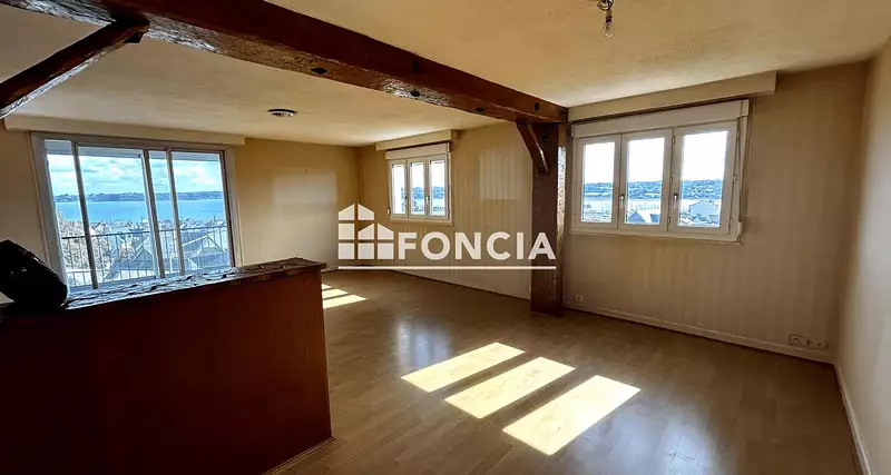 PLEINE VUE SUR LE PORT ET LA MER pour cet APPARTEMENT DE TYPE 4 de 97.15 m² avec LOGGIA en sus de 7,60 m². Il vous offre une entrée, un séjour-salon de 34,50 m² donnant sur la Loggia et offrant une pleine vue sur le Port de Perros-Guirec, une cuisine avec cellier, 3 chambres et une salle de bains. De plus, l'appartement dispose également d'une cave et d'un garage privatif.